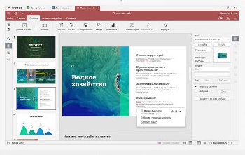 Создавайте яркие демонстрационные материалы. Просматривайте и редактируйте презентации в формате PPTX, PPT, ODP.